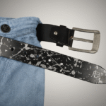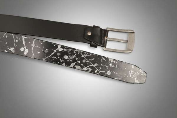 Abstract Series Pearl Metallic Leather Belt — Elevate your style with this full-grain leather belt featuring laser-etched abstract patterns and hand-painted pearl metallic accents. Durable, versatile, and uniquely artistic, it’s the perfect statement accessory for casual or polished looks.