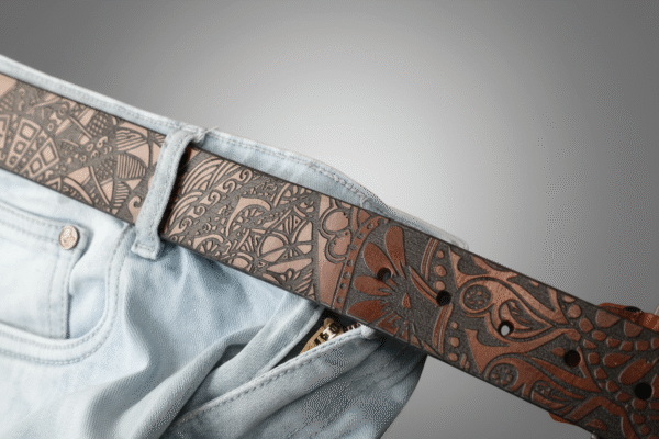 More than an accessory, this belt celebrates artistry and mindful detail. Its design is perfect for those who appreciate thoughtful craftsmanship, intricate patterns, and subtle statements of personal style. Whether paired with casual attire or contemporary outfits, it functions as both a stylish accent and a visual anchor for those who value mindfulness in their everyday life.