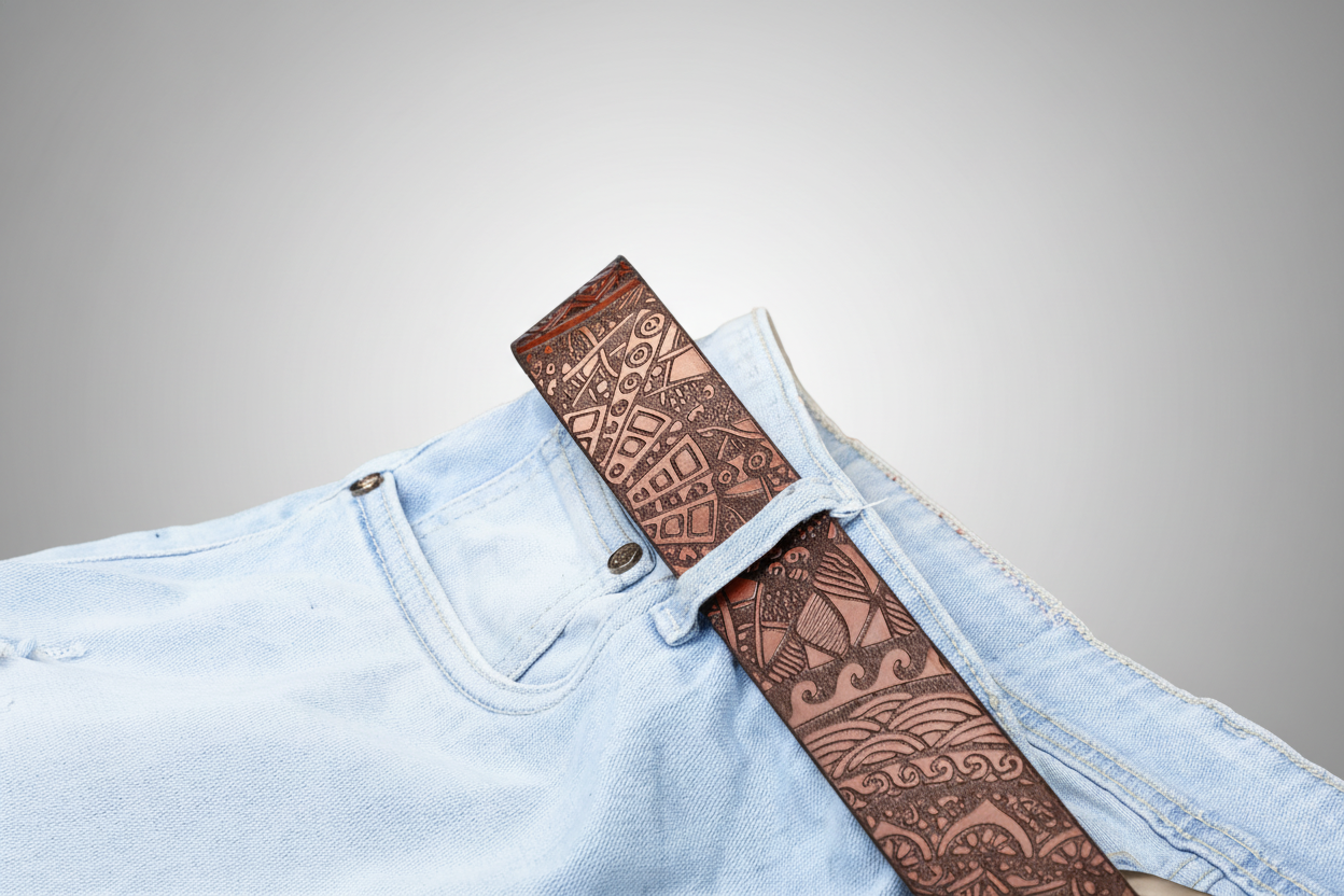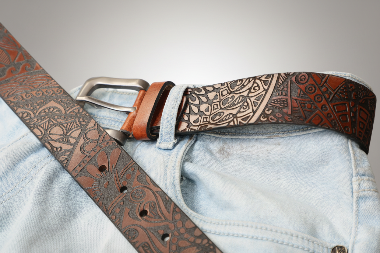 Wear the Mandala Nexus Leather Belt — a meditation in motion, brought to life in leather.
