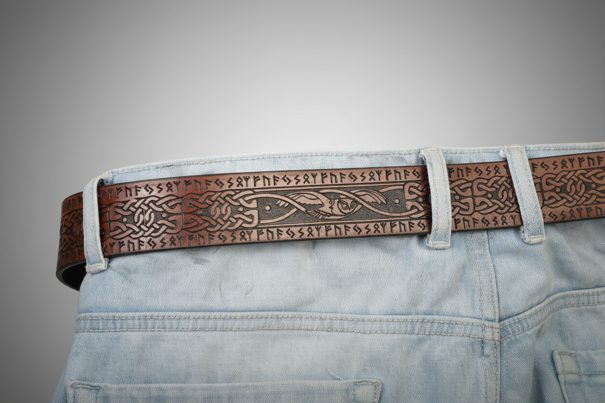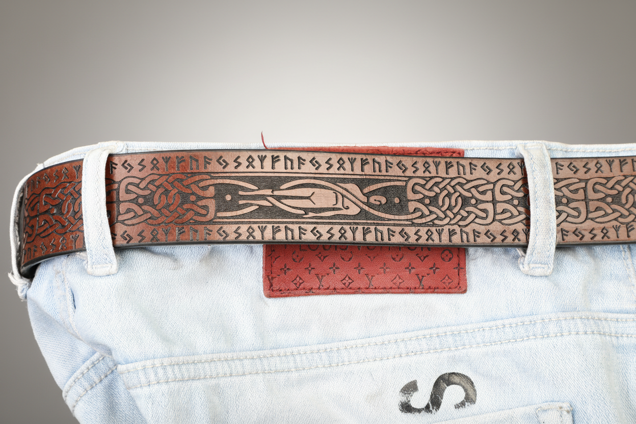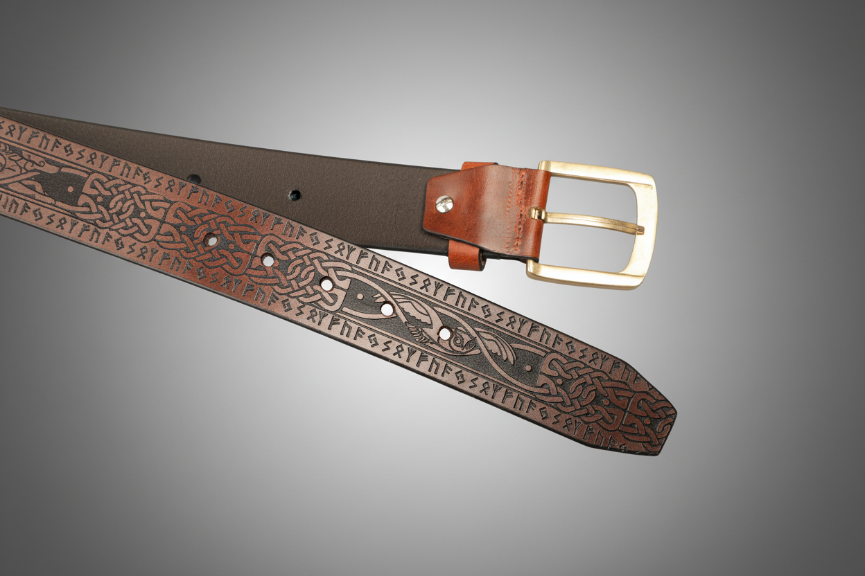 Celtic Zoomorphic & Rune Leather Belt – Symbolic Art and Timeless Craft