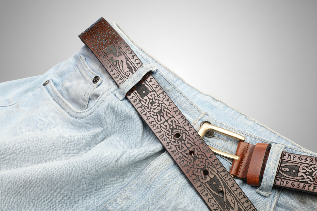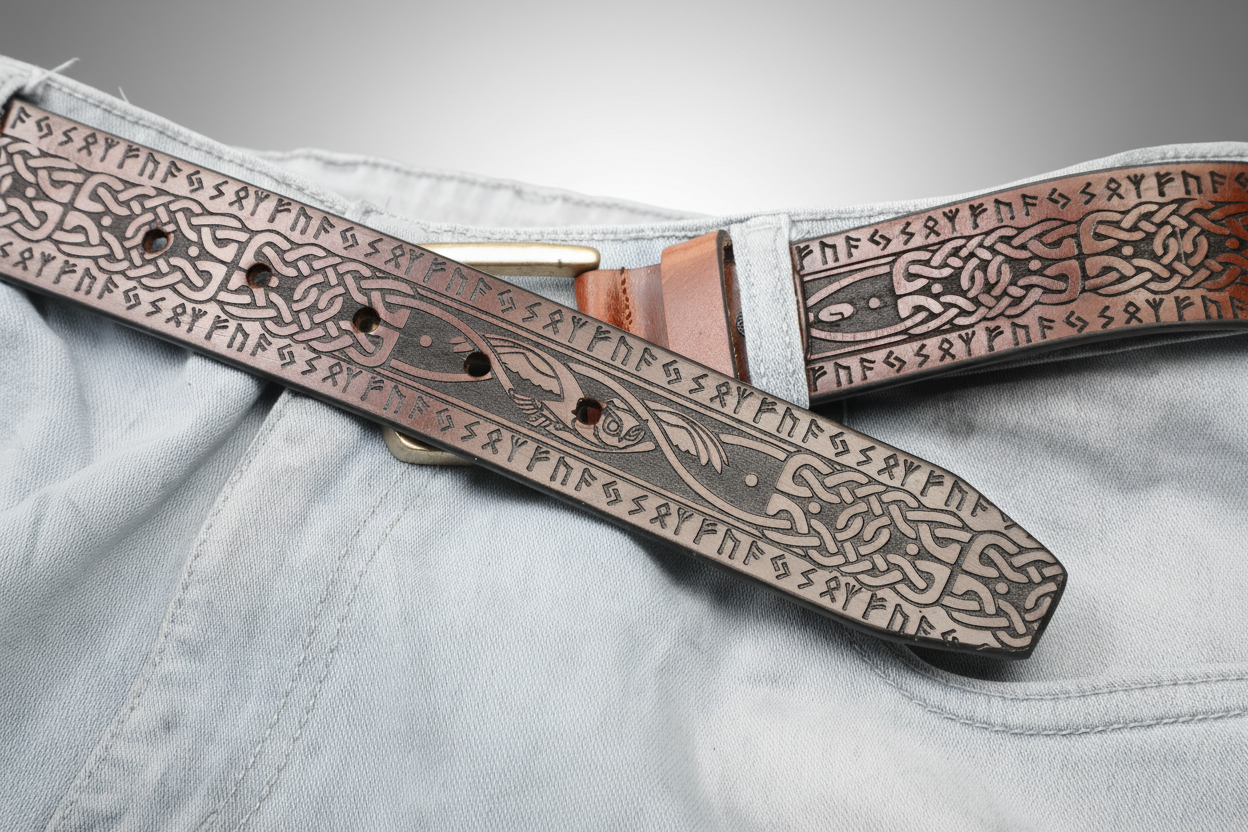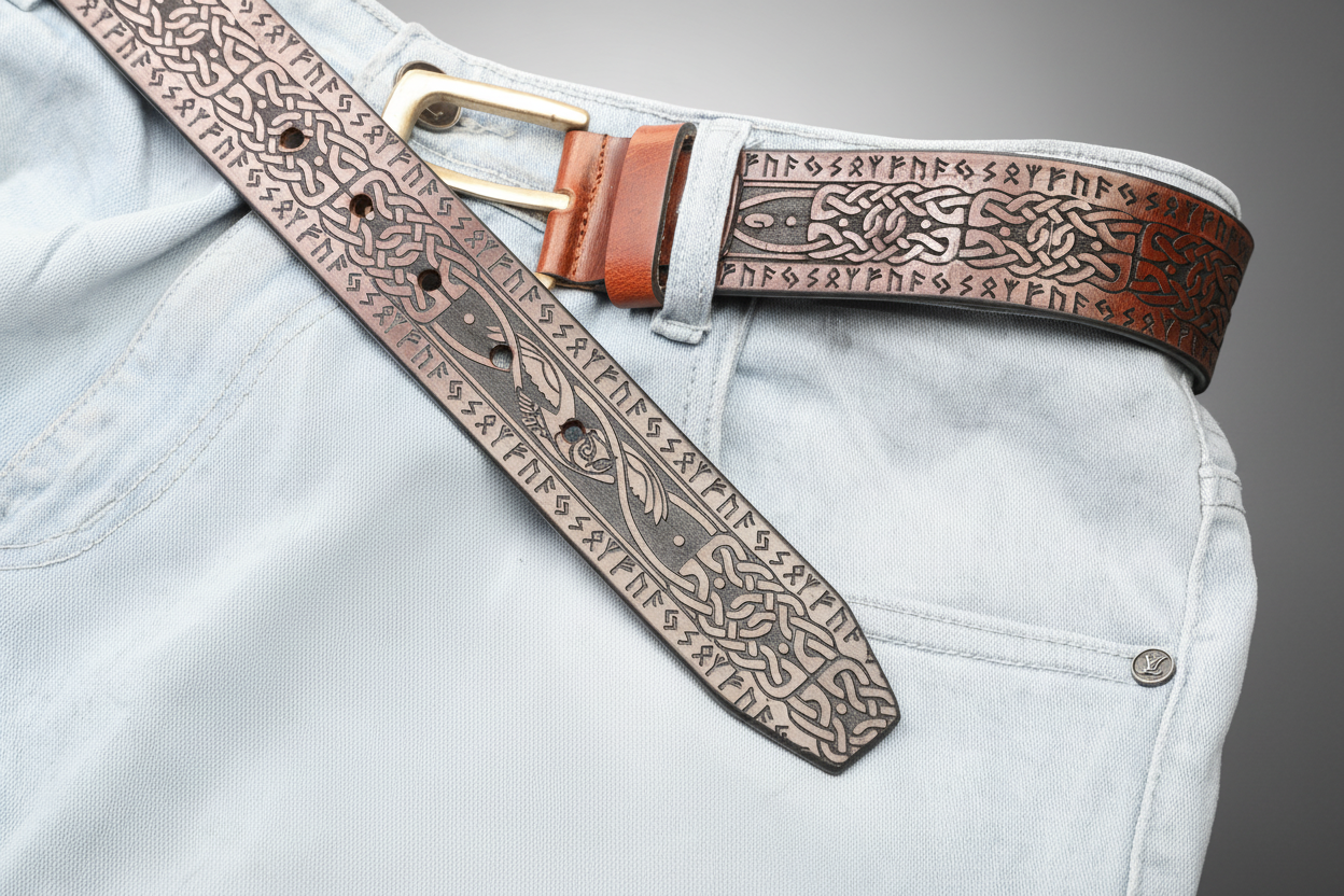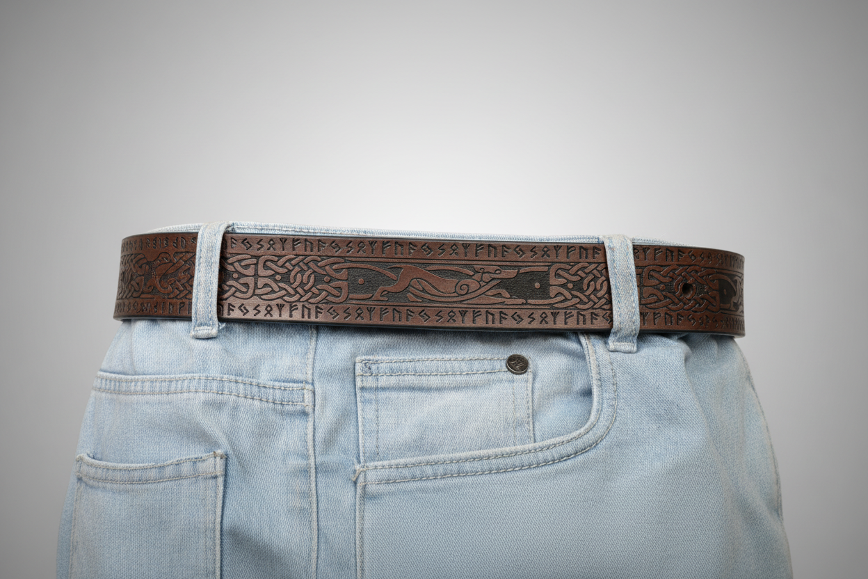 Celtic Zoomorphic & Rune Leather Belt – Symbolic Art and Timeless Craft