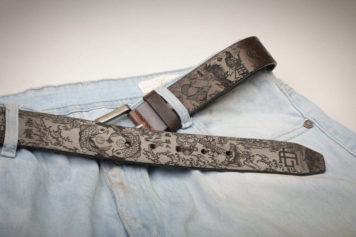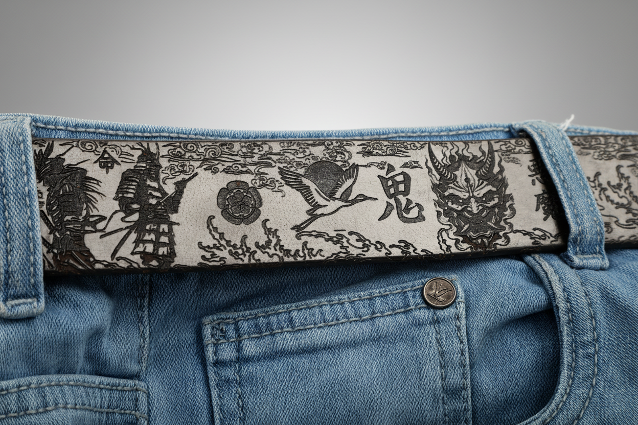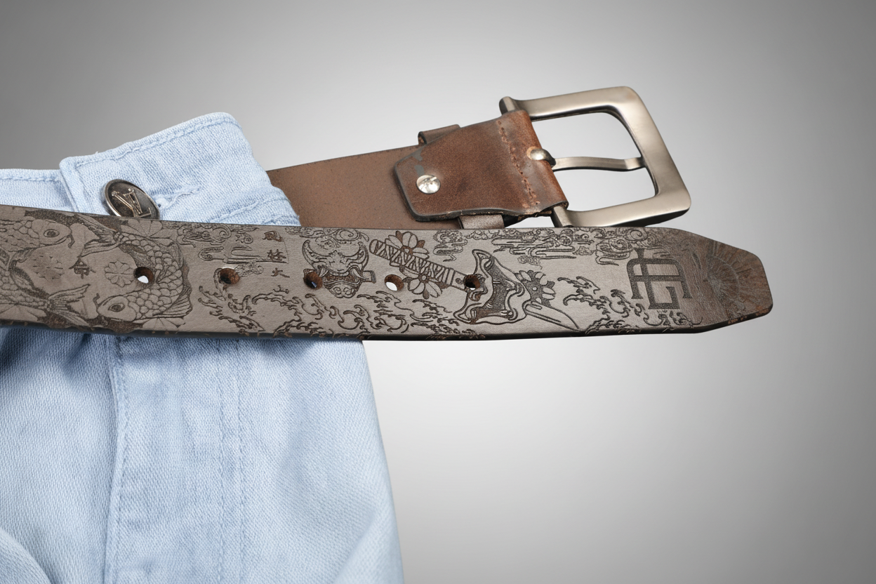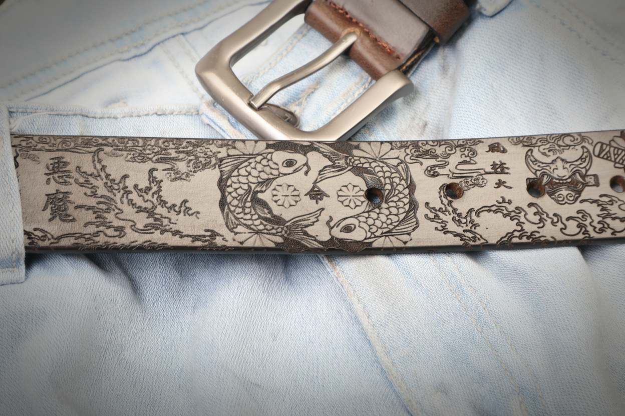 Oni & Ronin Leather Belt – Samurai, Koi & Japanese Motifs