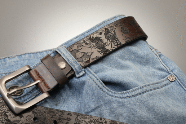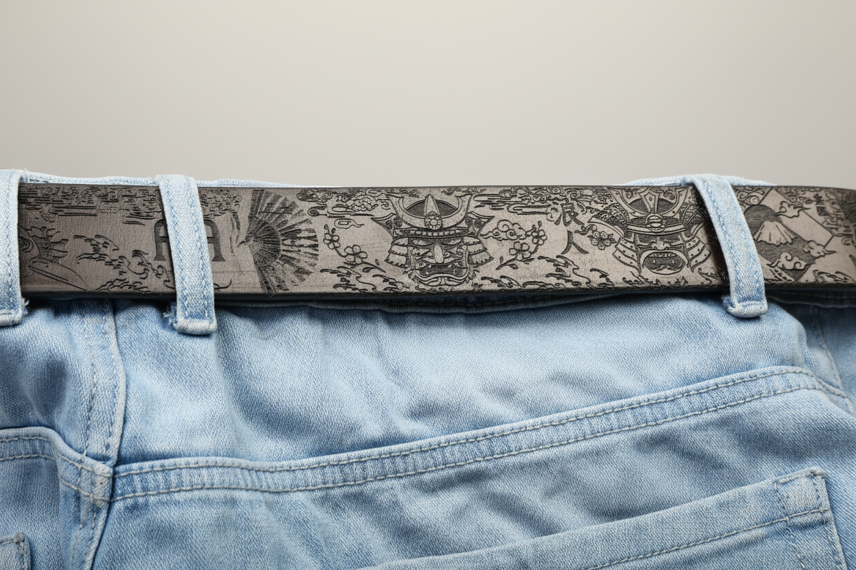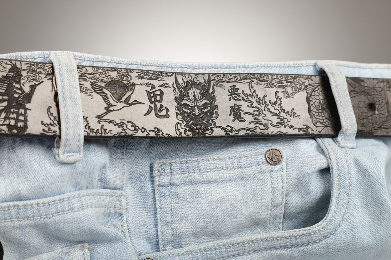 Ideal for lovers of Japanese art, samurai culture, and finely detailed leather accessories, this belt pairs effortlessly with casual, street, or semi-formal outfits. It’s a wearable story of heritage, artistry, and style.