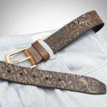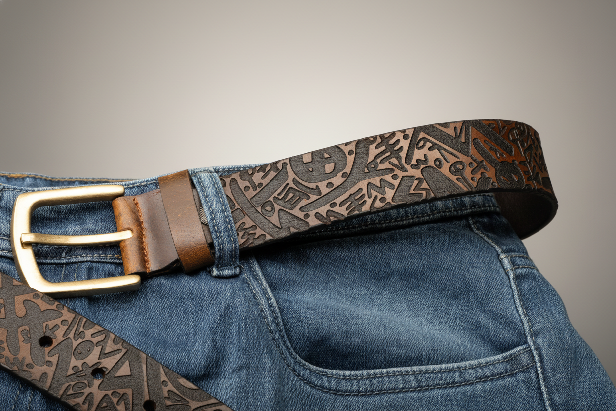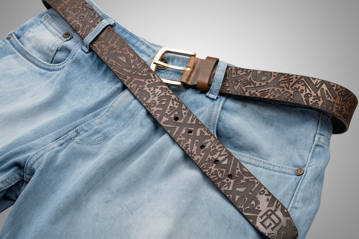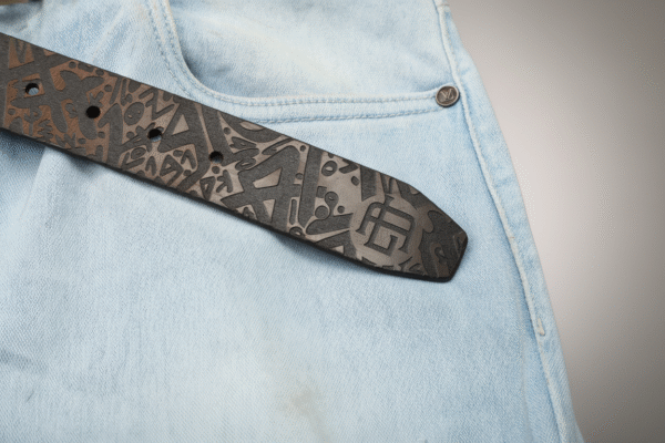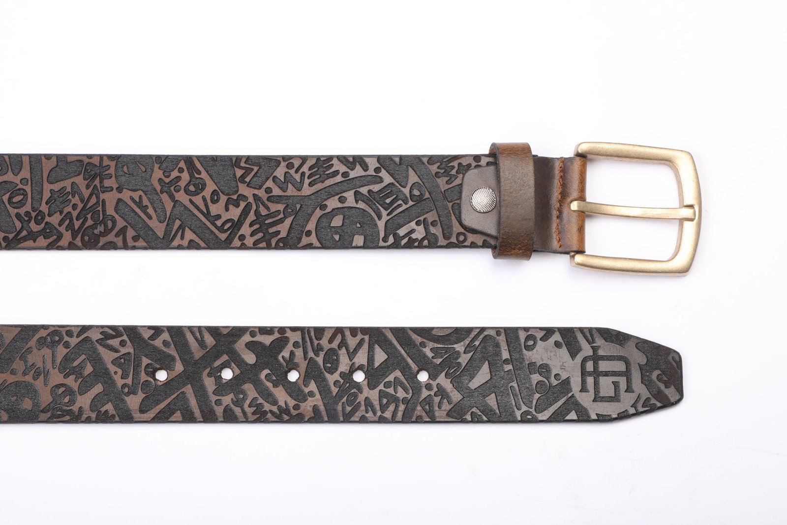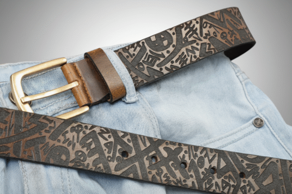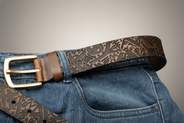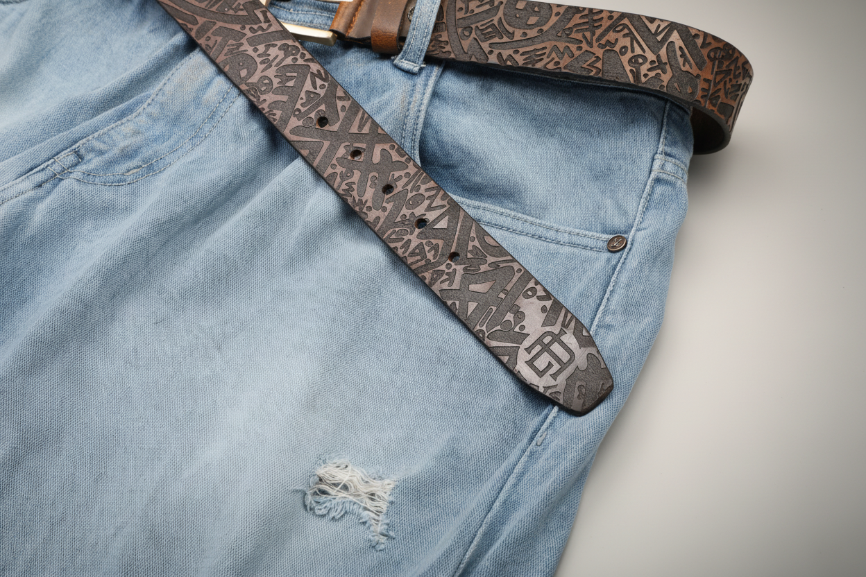 Celebrate history and design with the Phoenician Calligraphy Leather Belt — a timeless piece of wearable artistry.