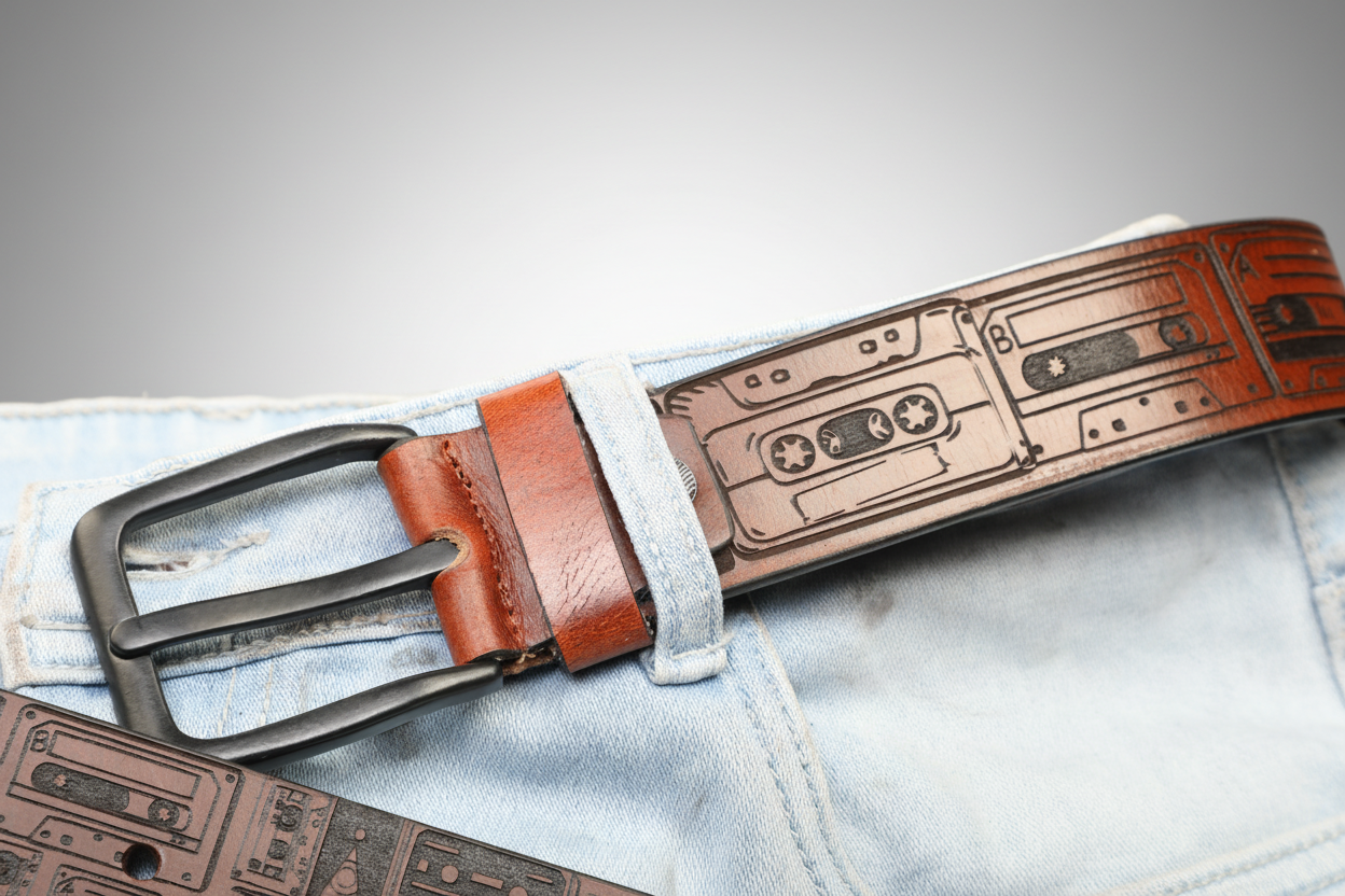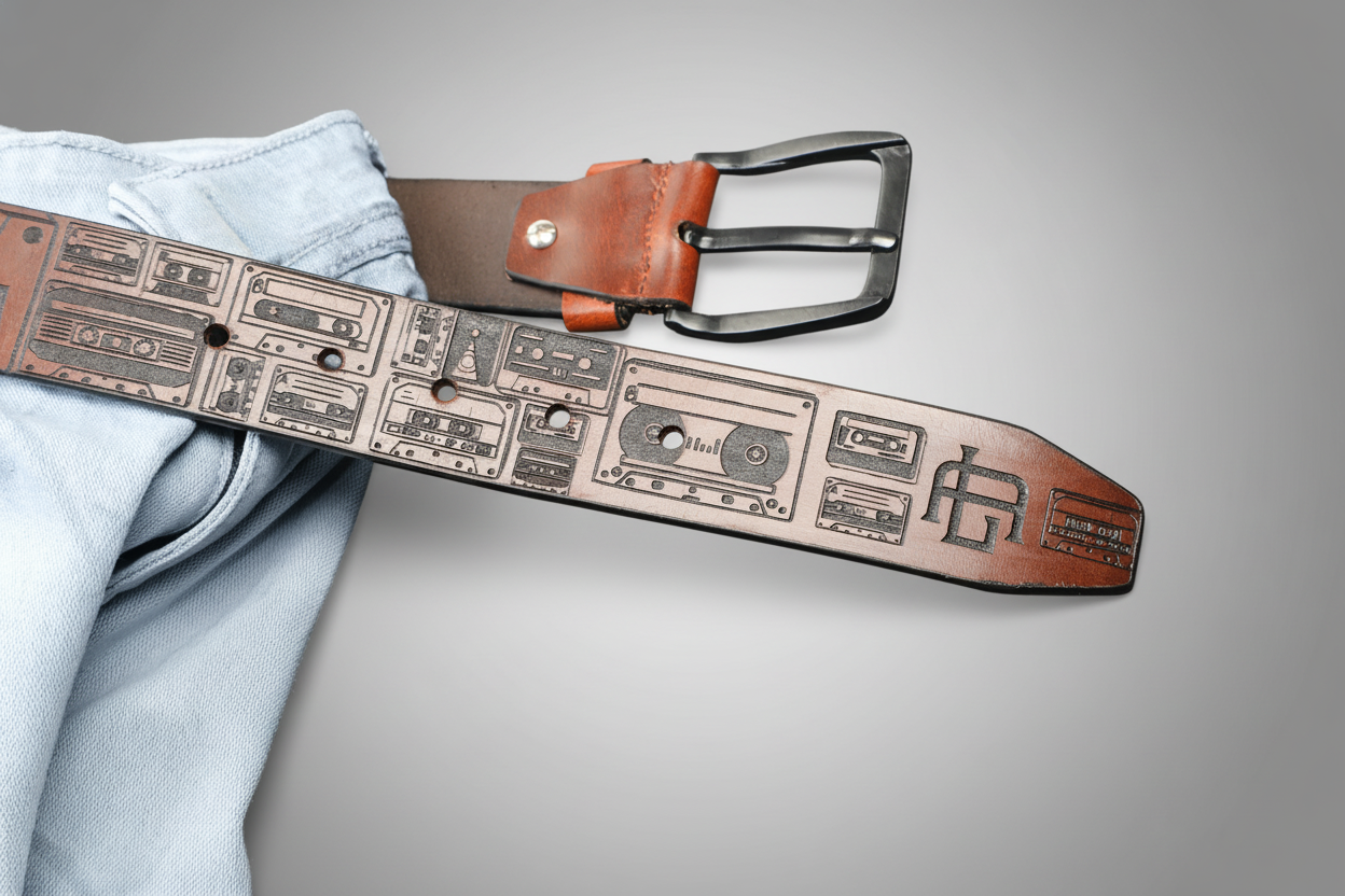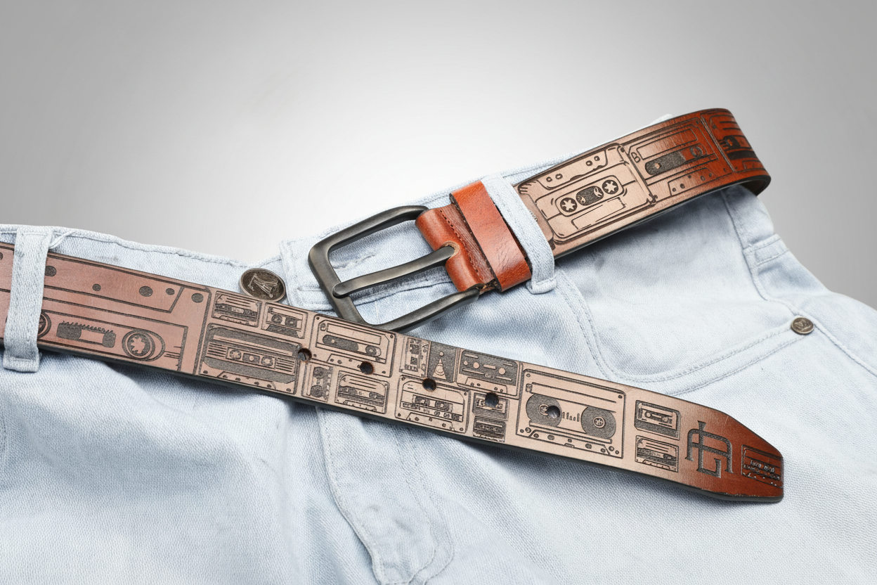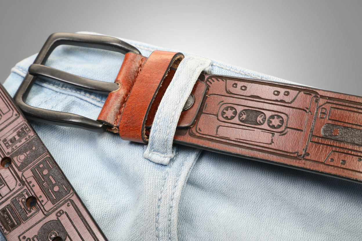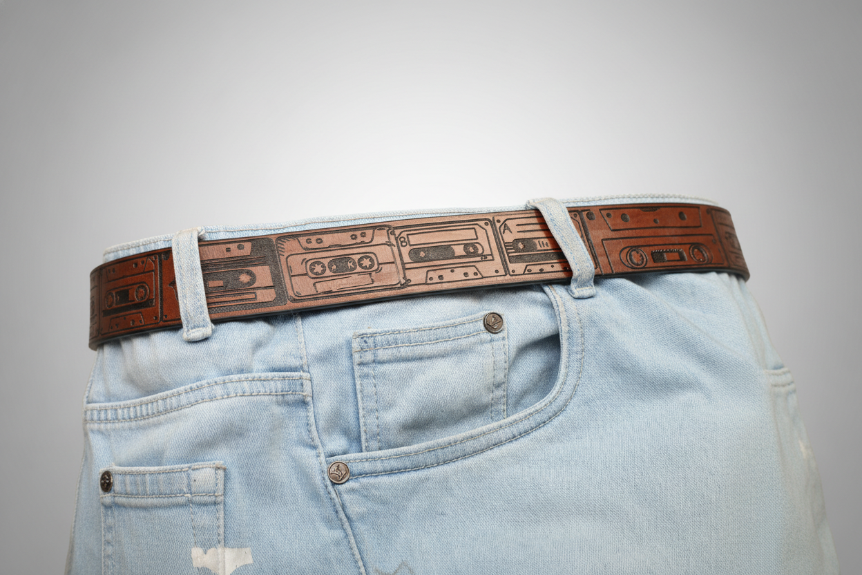 Retro Cassette Tape Leather Belt – A Tribute to Analog Music Culture